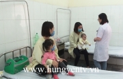Thời tiết thay đổi bất thường khiến cho trẻ em đến khám và nhập viện vì cúm và các bệnh lý hô hấp tăng đột biến tại Bệnh viện Đa khoa Phố Nối.